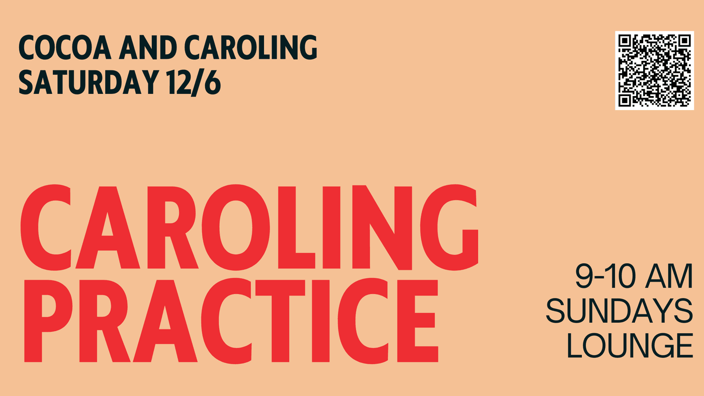 Sundays until 11/30 || 9 am - Caroler Practice. We will be practicing the songs for Cocoa & Carols on Sunday mornings in November. Singers of all ages welcome.