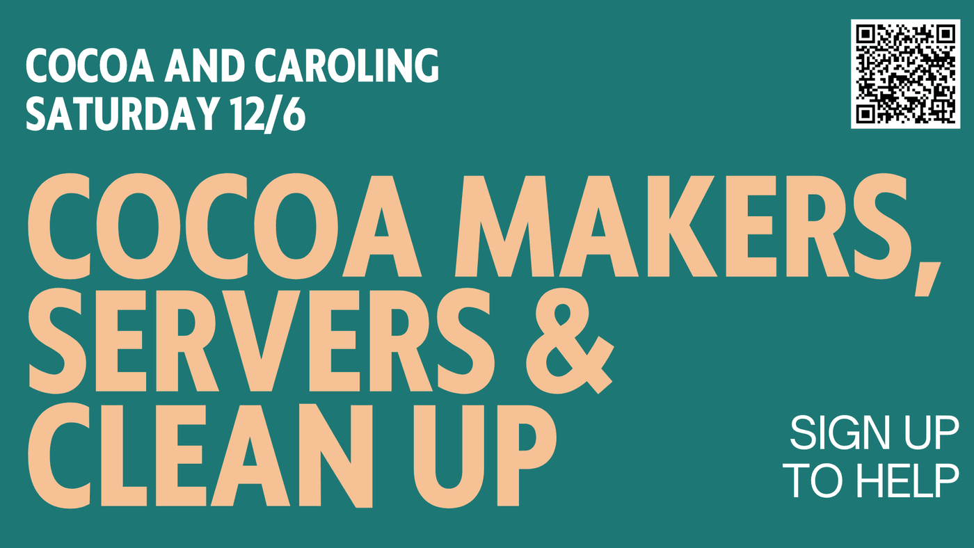 Sign up to help - carolers, cocoa preparation, serving and clean up, traffic control, etc.